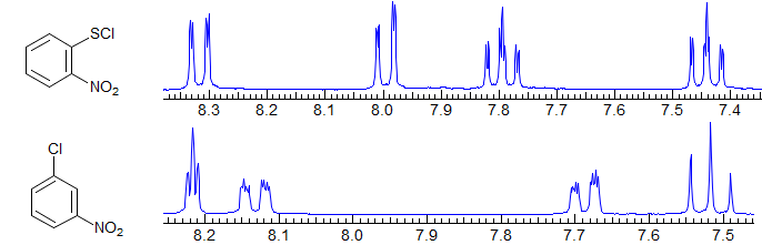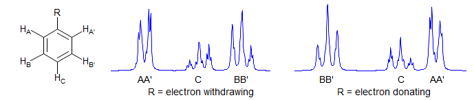 Always second order. Commonly seen in monosubstituted phenyl groups. Examples: 1, 2, 3, 4.