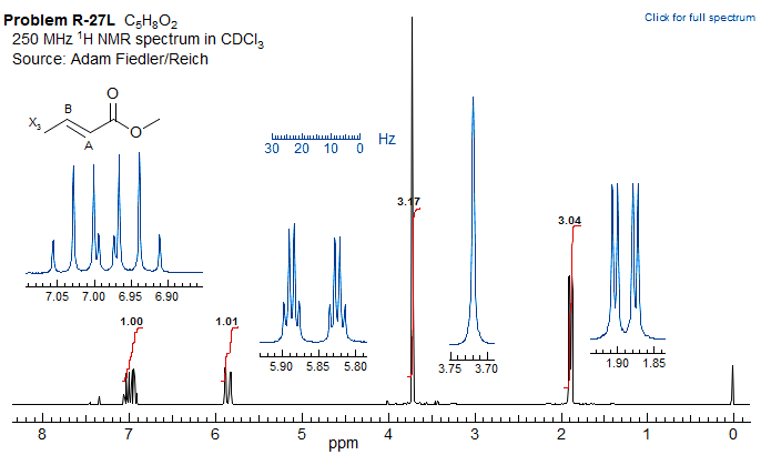Another sample ABX3 spectrum of methyl crotonate is shown below (this one is really AMX3).