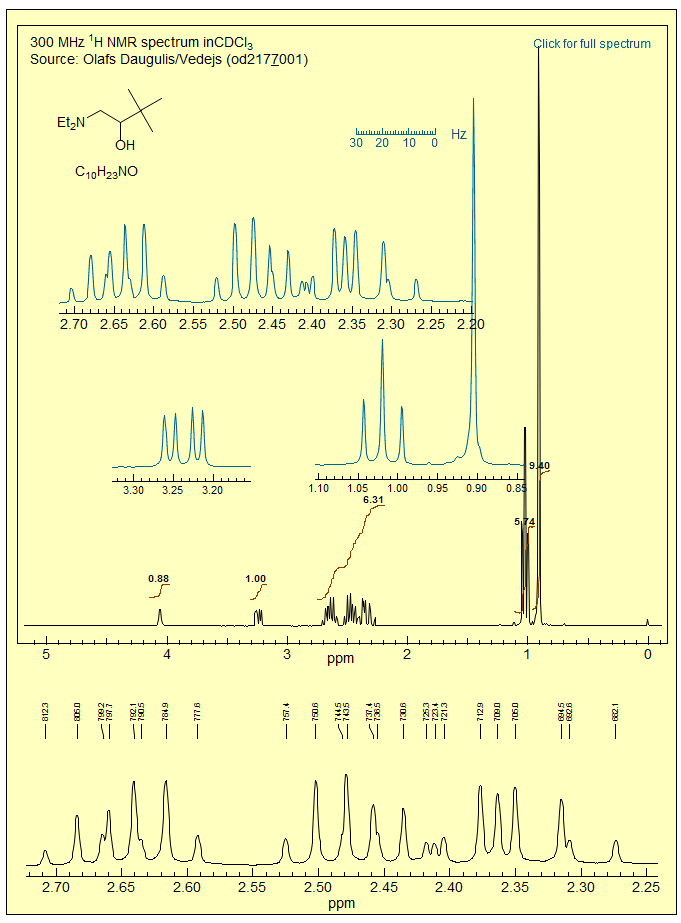 Exercise: Here is a test of the previous sections: analyze the spectrum below, assign all protons, identify all coupling constants.