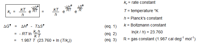ΔS‡ = 1.9872 (intercept - ln(κk/h) (κ = transmission coefficient, either 1 or 1/2)