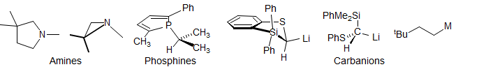 Pyramidal Inversions. The inversion barriers for amines, imines, carbanions, phosphines, oxonium salts, sulfonium salts, and sulfinyl chiral centers can sometimes be measured by DNMR techniques.