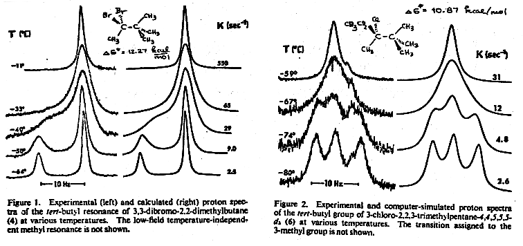 The DNMR method requires measurement of high quality NMR spectra at a series of accurately known temperatures in the region in which significant line broadening of relevant signals occurs. For intermolecular processes, the effect of a series of concentrations on the rate can also be studied. The determination of accurate rate constants by the DNMR method requires line shape simulations using computer programs such as Binsch's DNMR5 program (Review: Binsch, G. Dynamic NMR Spectrosopy, Jackman, L. M.; Cotton, F. A., Eds., Academic Press, N. Y., 45) or WINDNMR.