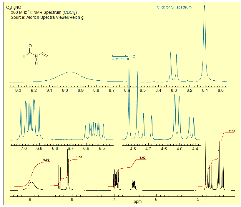 Exercize: Interpret all features of the room temperature NMR spectrum of N-vinyl formamide